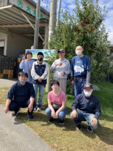 果樹園の方が粒が小さくても色の濃いものを選ぶと甘いよと教えてくれました。昼食に食べたボリュームのあるかつ丼に大満足の皆さんでした。果樹園の方も、食堂の方も、とても親切にしてくださりあたたかな気持ちになって帰ってきました。
