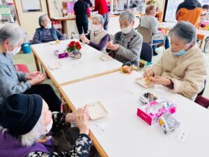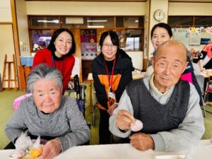 海外協力隊の皆さんが来所され一緒におにぎり作りをしました。「しばらく作ってないね~、上手にできるかな?」「おにぎり大好きだよ!」と、それぞれにお話ししながら作っていました。自分で握るため、待ちきれずに味見をされている方もいらっしゃいました。中には、「俺は握れんで、握ってくれ」と職員に頼まれている方もいましたが、頼んで握ってもらうのも、とても嬉しそうな様子でした♪